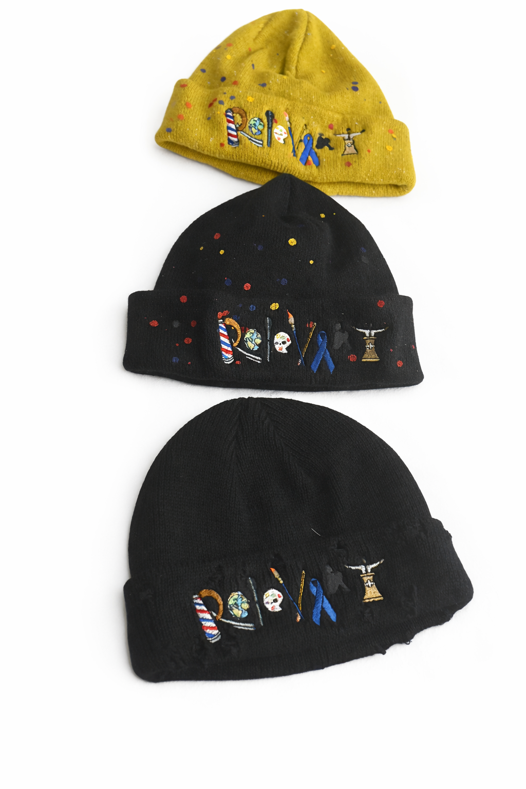 Offered in three distinct color options, each beanie carries its own personality while staying rooted in the same message: creativity with purpose. Subtle paint-splatter detailing adds texture and an art-driven edge, giving the piece a handcrafted, studio-inspired feel.